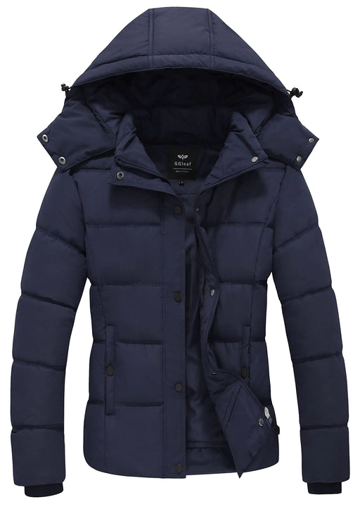 GGleaf Womens Winter Thicken Puffer Coat Windproof Warm Jacket with Removable Hood Navy Large