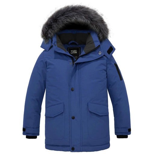 ZSHOW Boys Winter Snowboard Coat Thick Fleece Lined Quilted Parka Windproof Puffer Jacket (Blue8)